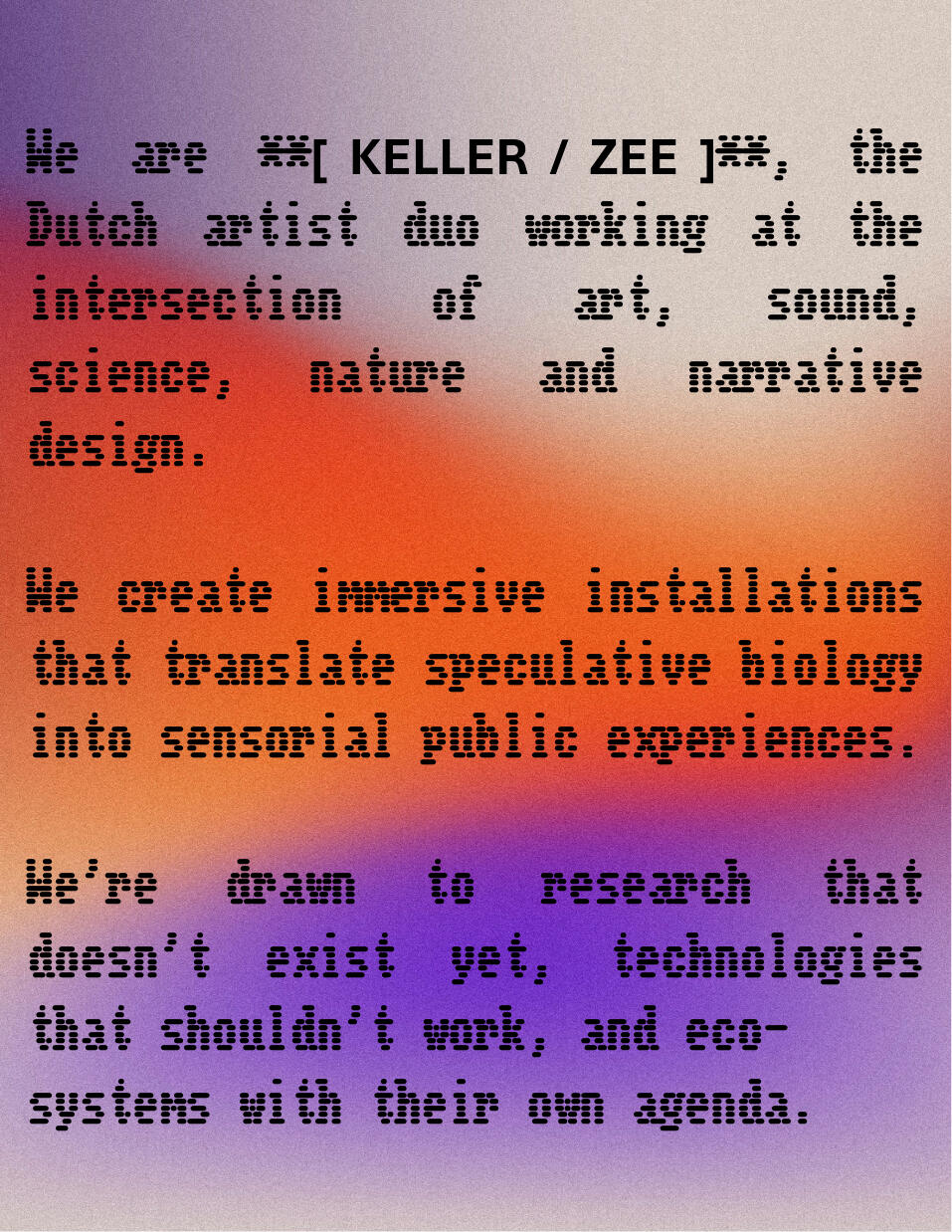 → www.studiomachteldzee.comTogether we design layered, site-specific works that combine physical materials, spatial sound, XR, and fictional science.